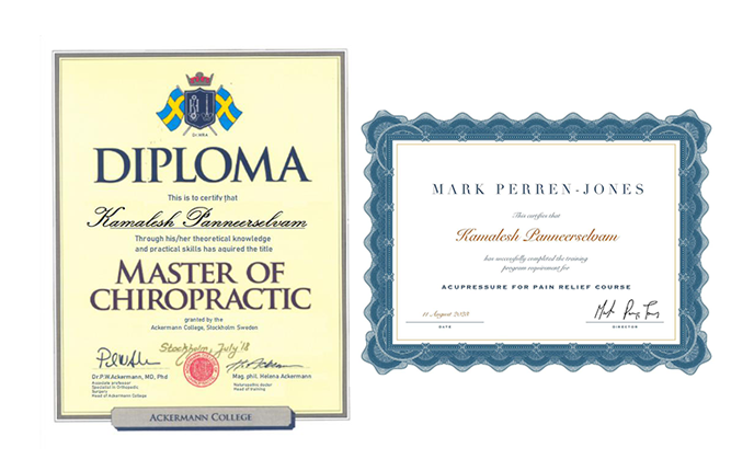 With over 10 years of experience, Dr. P. Kamalesh is a highly qualified chiropractor dedicated to improving patient health and well-being. He holds a Doctor of Chiropractic Medicine degree from Sweden, a Diplomate of Acupuncture certificate, and a BDS Degree. Dr. Kamalesh utilizes a holistic approach combining chiropractic adjustments, acupuncture, and lifestyle counseling to effectively treat a wide array of musculoskeletal conditions.